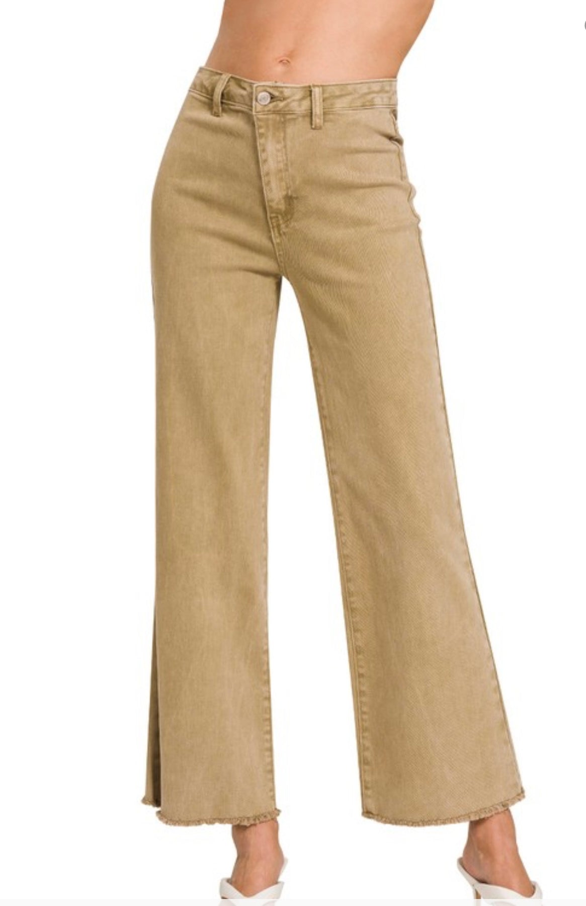 Acid Washed Frayed Cutoff Hem Straight Wide Pant