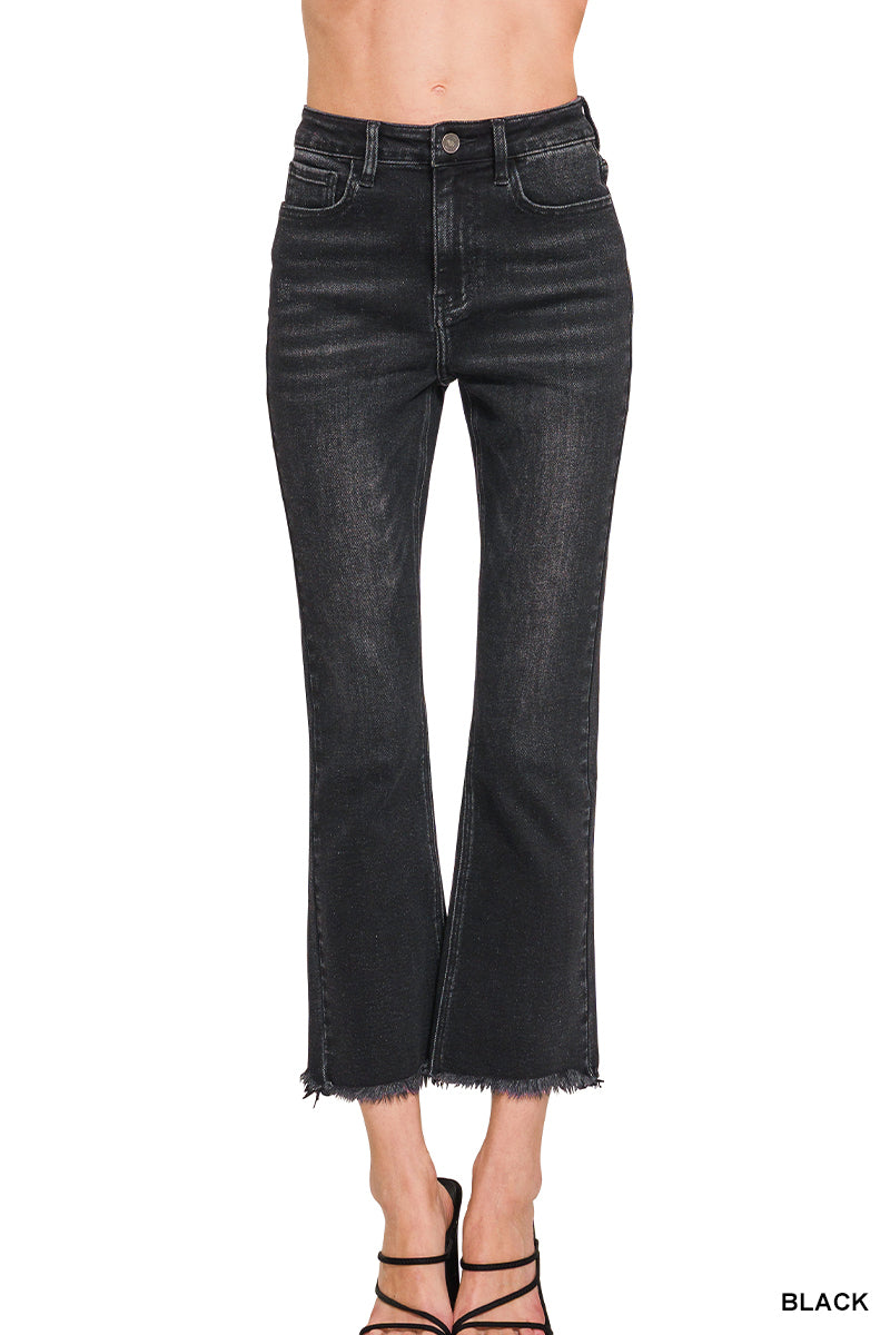 HIGH RISE STRAIGHT RAW HEM CROPPED DENIM PANTS