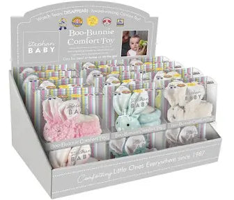 Polyester Plush, Gentle Soothing, ReusableTears disappear when you use our Boo-Bunnie comfort toy on a little one's boo-boos. Includes plush Boo Bunnie and bisphenol-free plastic boo cube pre-filled with distilled water. Store in freezer until needed. Stephan Baby Boo-Bunnies have received top awards from iParenting, the Family Review Center and Parent to Parent. Boo-Bunnies are ideal for gently soothing minor owies while comforting your little one. To wash boo bunny remove boo cube, machine wash, tumble dry low, do not bleach. Boo cubes may be washed in warm soapy water and air dried. Boo cubes should not be washed in the dishwasher.