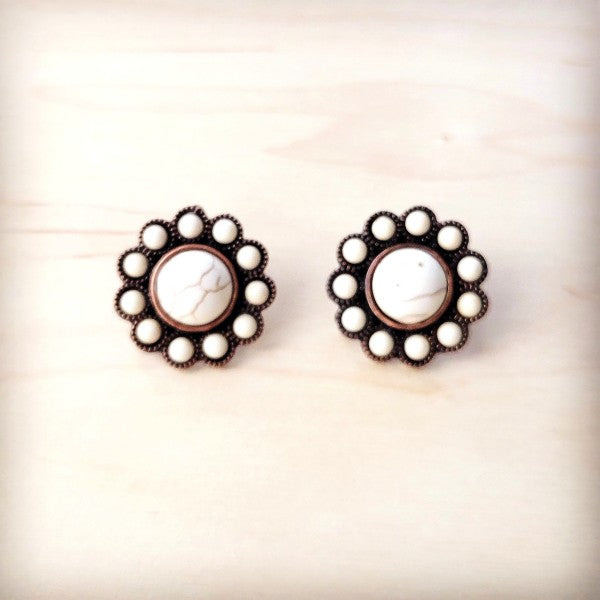 Squash Blossom Western White Turquoise Earrings