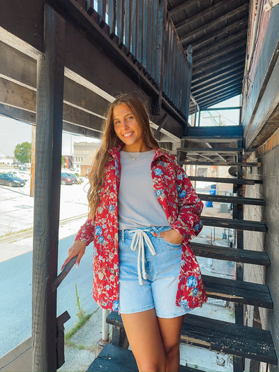 The arrival of Spring calls for the floral quilted jacket, providing just the right amount of warmth to ward off the chill. Its length offers ample coverage for our bottoms and pairs perfectly with skirts and pants. Featuring snap buttons and convenient pockets, this jacket's sleeves hit just above the wrist. May want to size up if you want to layer or have the oversized look.