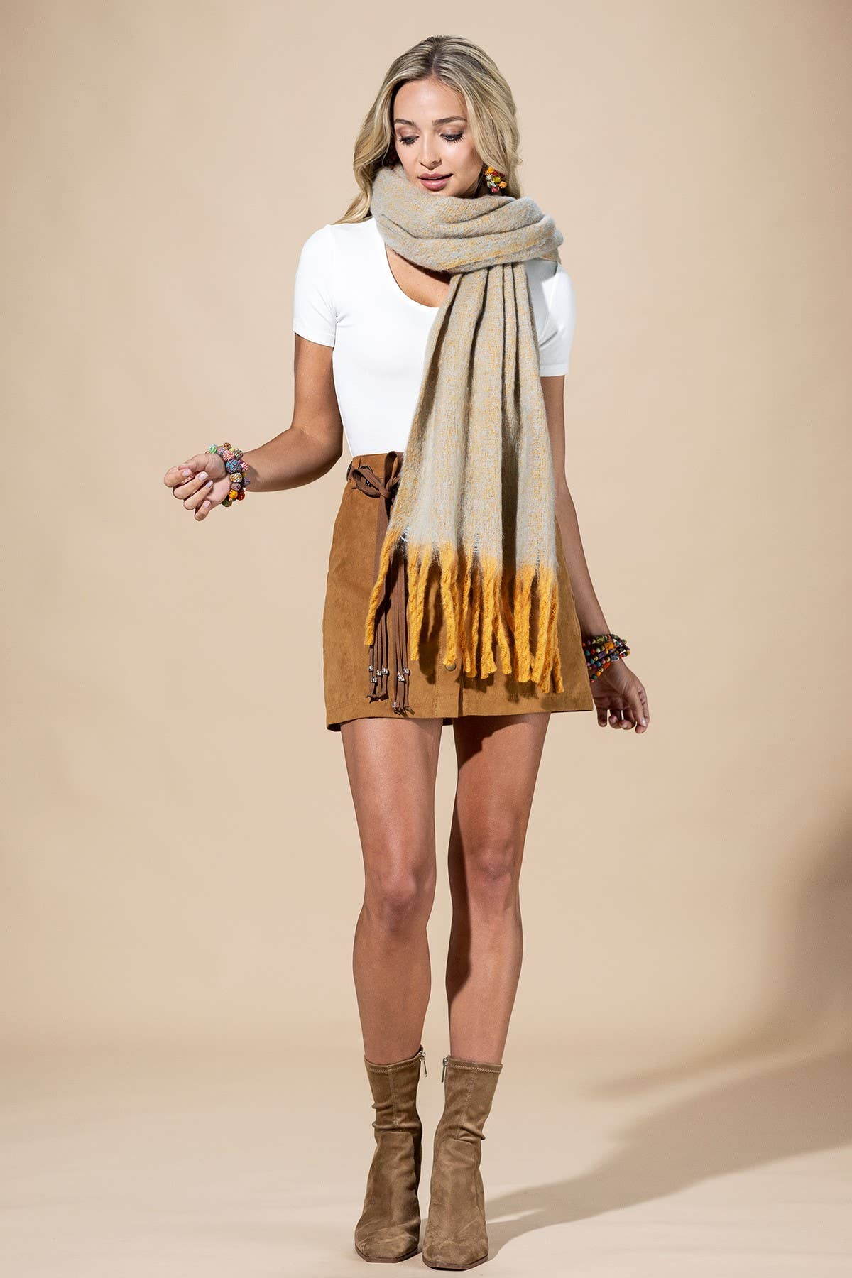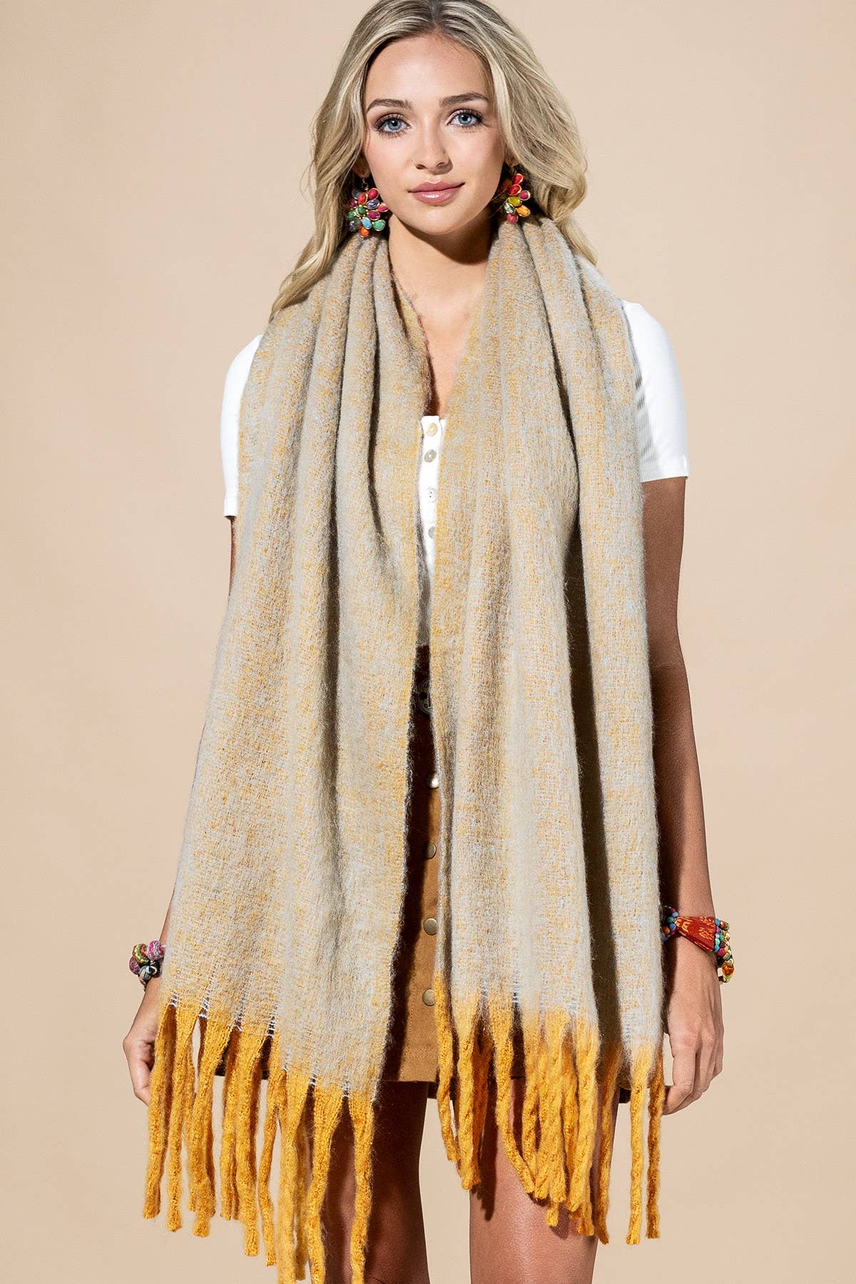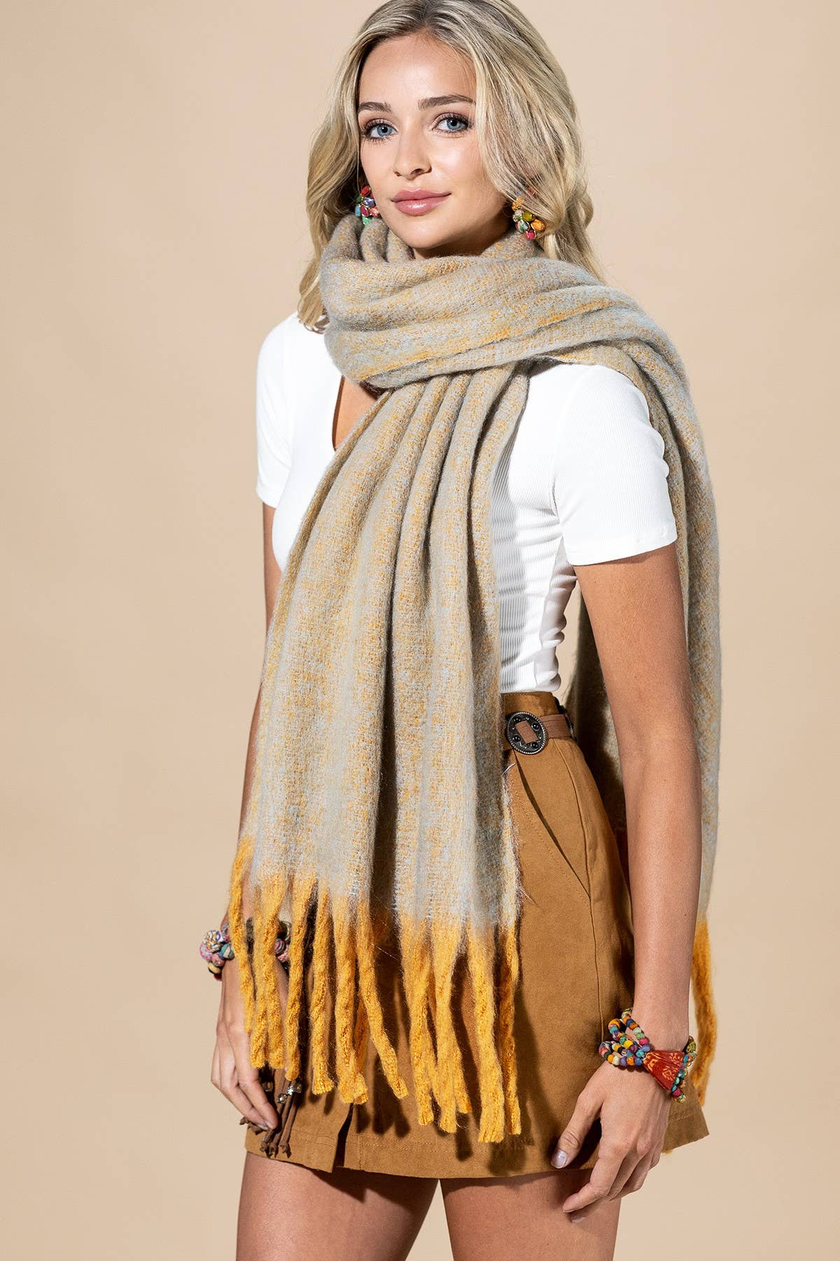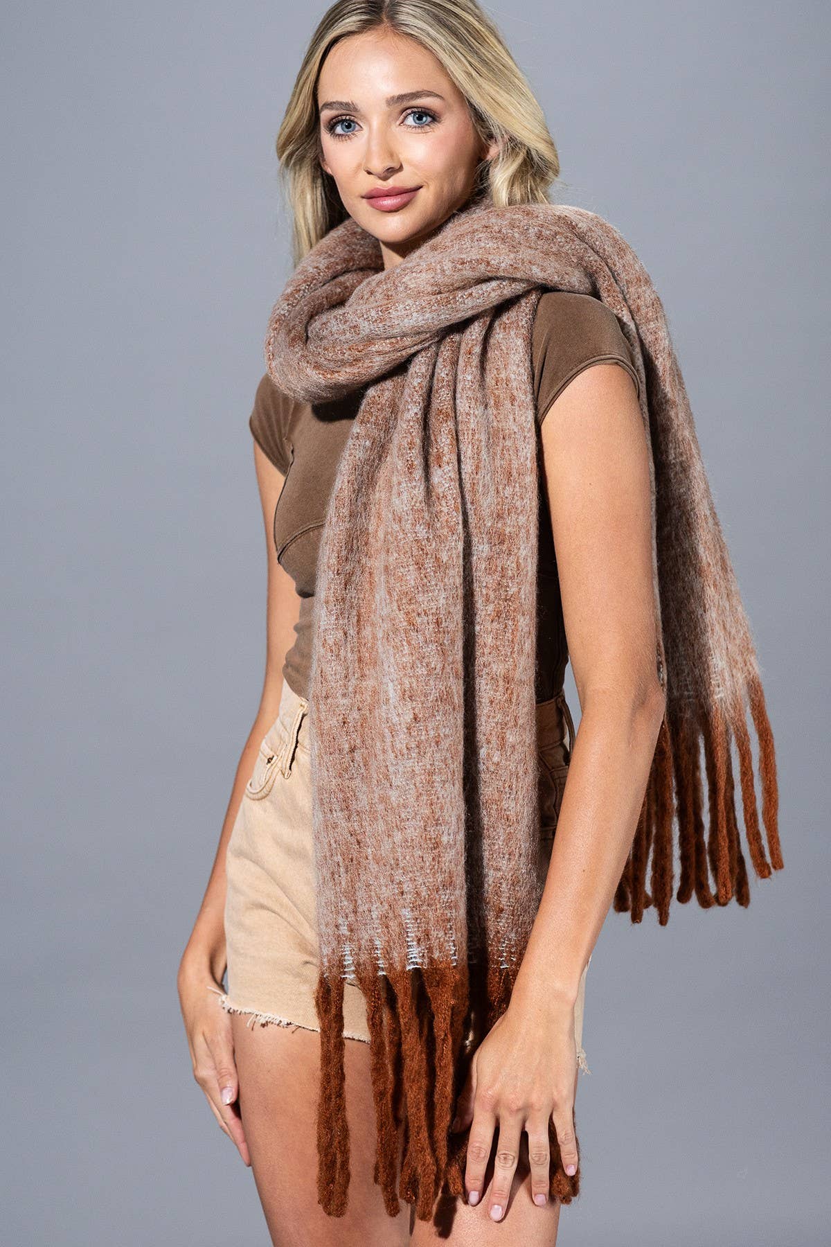 Soft, plush, and effortlessly chic-this brushed scarf is the perfect cool-weather accessory. The solid design is accented with a subtle textured finish and long fringe edges for a timeless look. Lightweight yet cozy, it's versatile enough to drape, wrap, or layer for everyday wear and seasonal styling. *100% Polyester *APPROX. L 68" W 19"