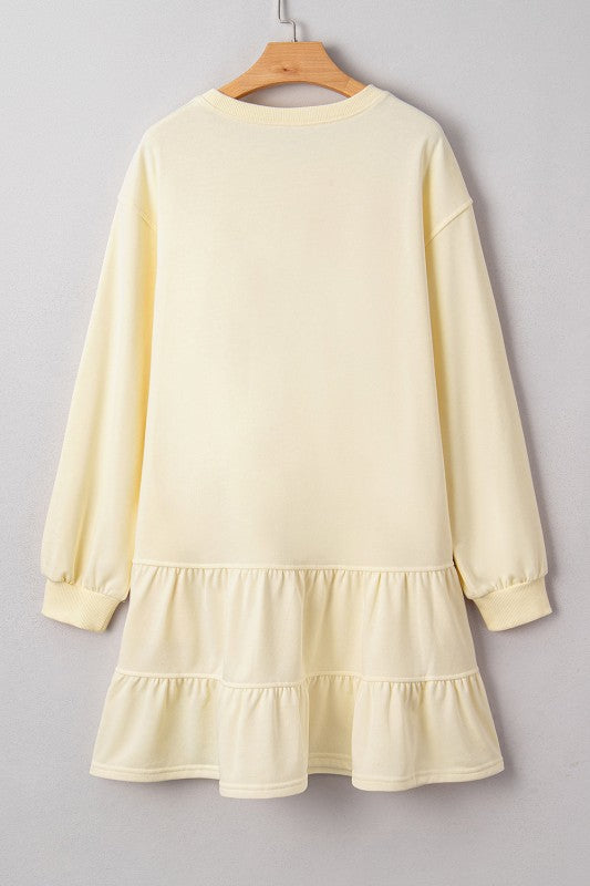 Solid Tiered Ruffle Hem Long Sleeve Dress